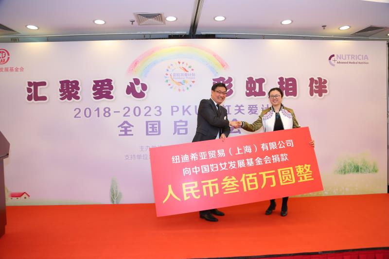 3月29日,中国妇女发展基金会(以下简称“中国妇基会”)携手纽迪希亚贸易(上海)有限公司(以下简称“纽迪希亚”)共同举办了“彩虹关爱计划”全国项目启动会。该项目是面向苯丙酮尿症(PKU)患者家庭的公益行动,旨在通过为患儿及家庭提供针对性的专业支持与关怀,帮助PKU儿童健康快乐成长。