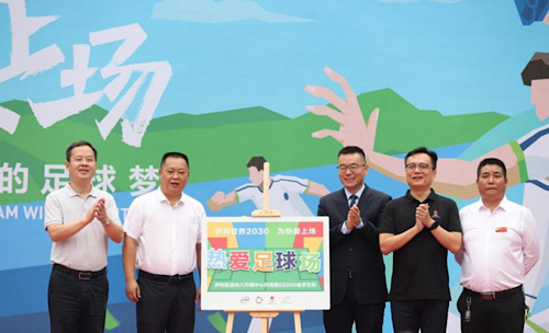即将奔赴杭州亚运会的女足运动员张琳艳、沈梦雨向同学们发来视频,鼓励大家坚持足球梦想,在全新的足球场上踢出精彩的人生。四年级学生刘玥说,“有时我们会在牛棚改造的停车场、车少人少的街边踢球,有的同学还会光着脚踢球,但进球瞬间的开心会让我们忘记眼前的一切。踢足球让我获得了自由奔跑的能力,谢谢叔叔阿姨给我们带来的礼物,我们会将对足球的热爱继续下去。”