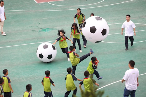 伊利集团“伊心向阳”志愿者们与同学们开展趣味足球赛