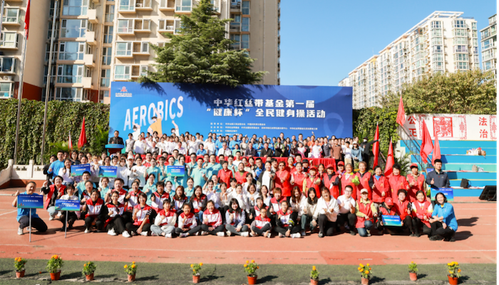 2023年10月15日,中华红丝带基金第一届“健康杯”全民健身操活动在北京举行。同时,四川凉山、云南昆明、广西南宁和广东深圳四个分会场视频连线参与活动。本次活动有12个代表队参加,参与人数827人。活动现场众多志愿者、体育爱好者和社会各界人士齐聚一堂,共同参与这场以“运动、健康、快乐”为主题的盛大活动。