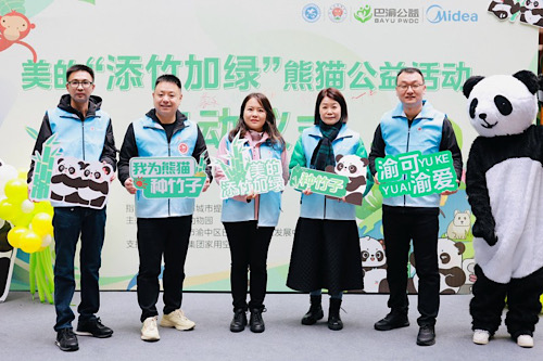 活动当天,美的空调代表、重庆动物园代表、重庆市城市管理局代表,以及重庆当地渝中区巴渝公益志愿者组织共同启动了“美的添竹加绿熊猫公益活动”。活动上,美的空调宣布将在3月21日世界森林日之前,在重庆市长寿区内大规模种下 “添竹加绿公益竹林”,这是美的空调对公益承诺的践行,也是对环保理念的深入推广。