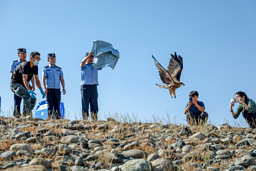经阿勒泰地区自然保护协会救助康复的猛禽放归大自然