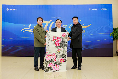 现场,绿色宣传大使叶榄将一幅亲手绘制的国画送给东风柳汽。画作的墨水由七大洲四十个国家的水调配而成,寓意着东风柳汽跨越国界,向海图强。